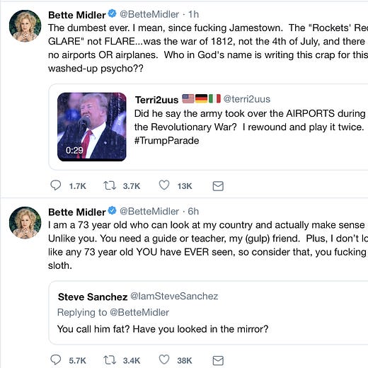 On a lighter note, Bette Middler was clearly over it, too and took to Twitter to tell people off and that provided some much needed laughs: