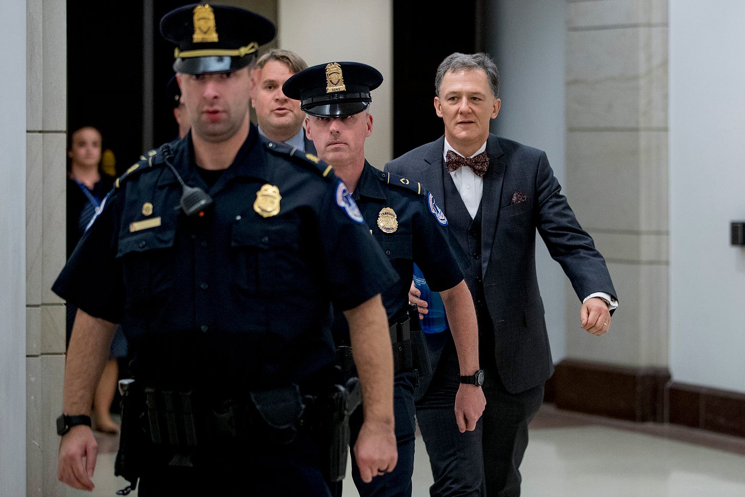 (George Kent, the Deputy Assistant Secretary of State responsible for Ukraine, arriving on Capitol Hill on Oct. 15 for his testimony.)