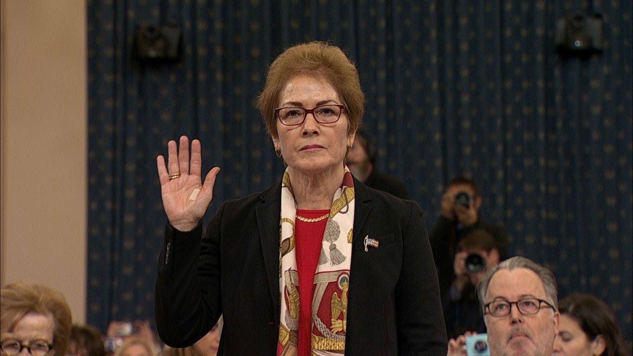 The House held public impeachment hearings with former Ambassador Marie Yovanovitch. Marie Yovanovitch testified that a smear campaign waged by "foreign corrupt interests" led to her early ouster. Yovanovitch also said she was prematurely recalled from her post in Ukraine due to Trump allies working to tarnish her reputation after 33 years in public service.