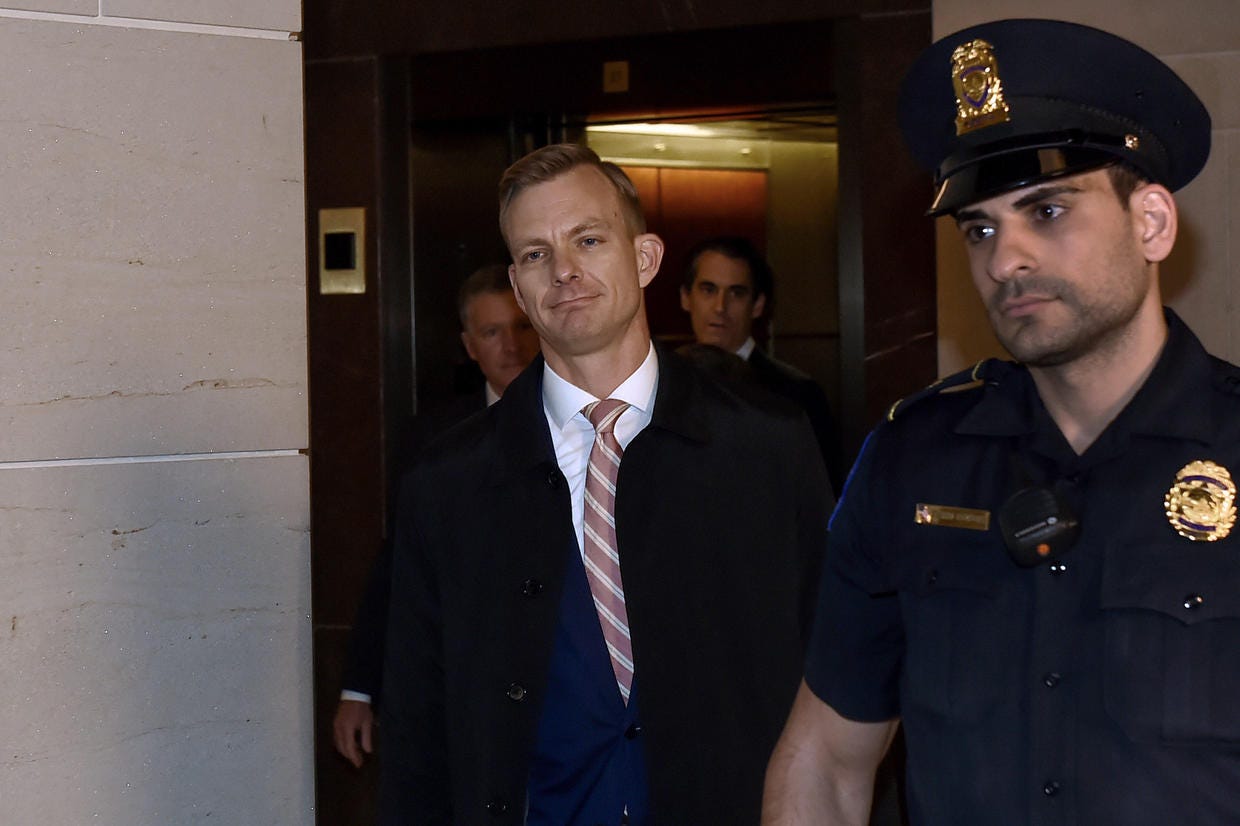 (David Holmes, a State Department official and aide to Bill Taylor, arriving for a closed-door deposition on Capitol Hill on November 15, 2019.)