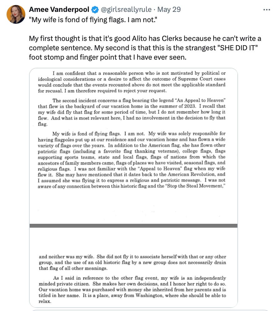 On Wednesday, Supreme Court Justice Samuel Alito, wrote to Congress to explain that he was refusing to recuse himself from Trump v US, the current Supreme Court case that addresses Donald Trump’s claim that as a former president he has absolute immunity from prosecution over his role in the Capitol insurrection on 6 January 2021.